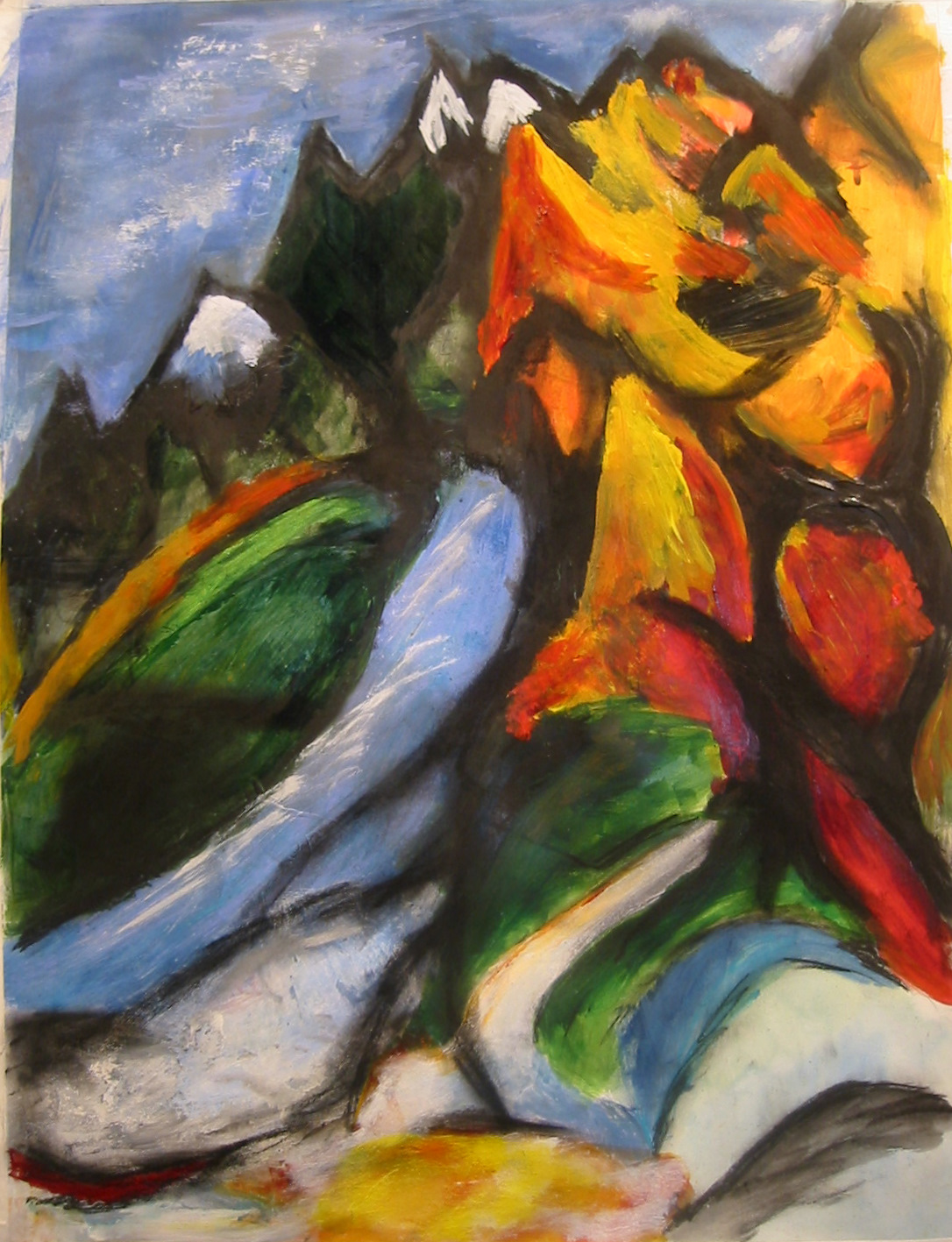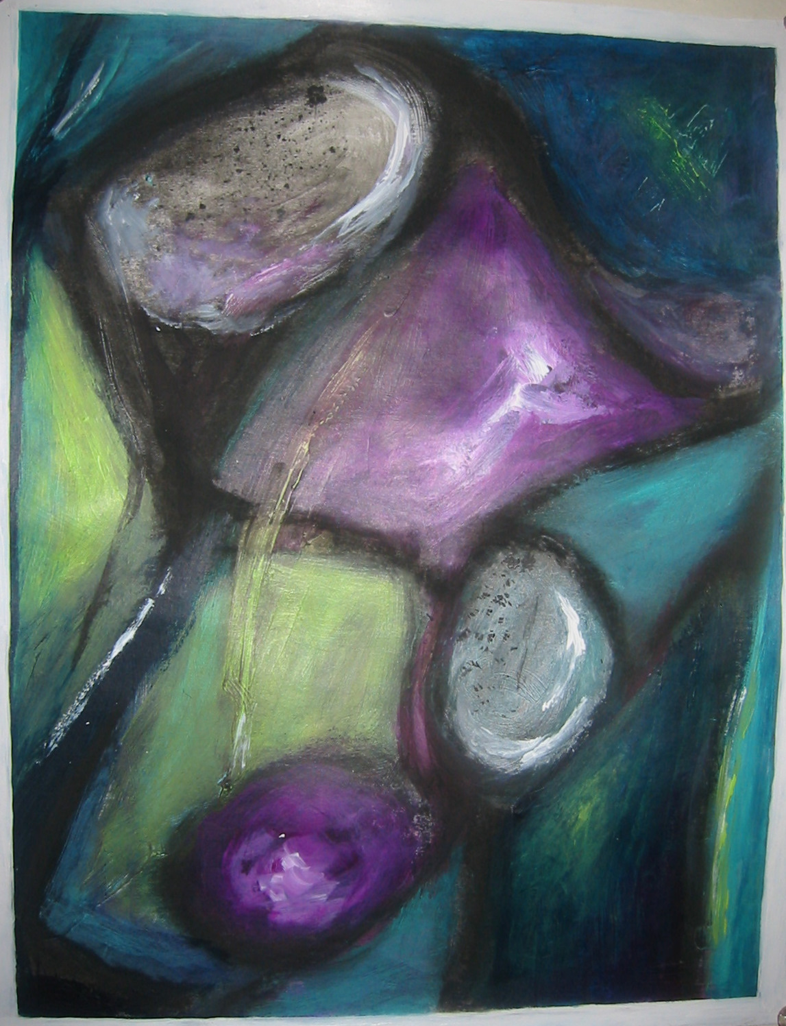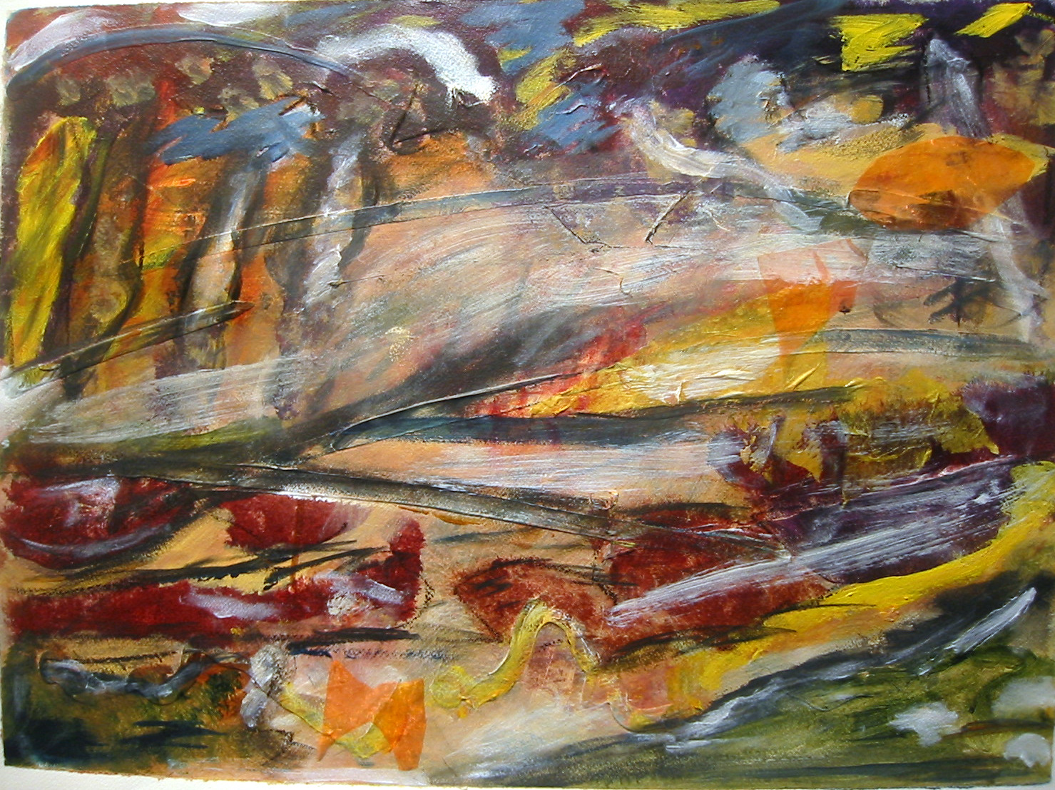 - Ann’s vigorous scrubbing of paper not up for it took “subtractive” painting to a new level. Great imaginative solution.