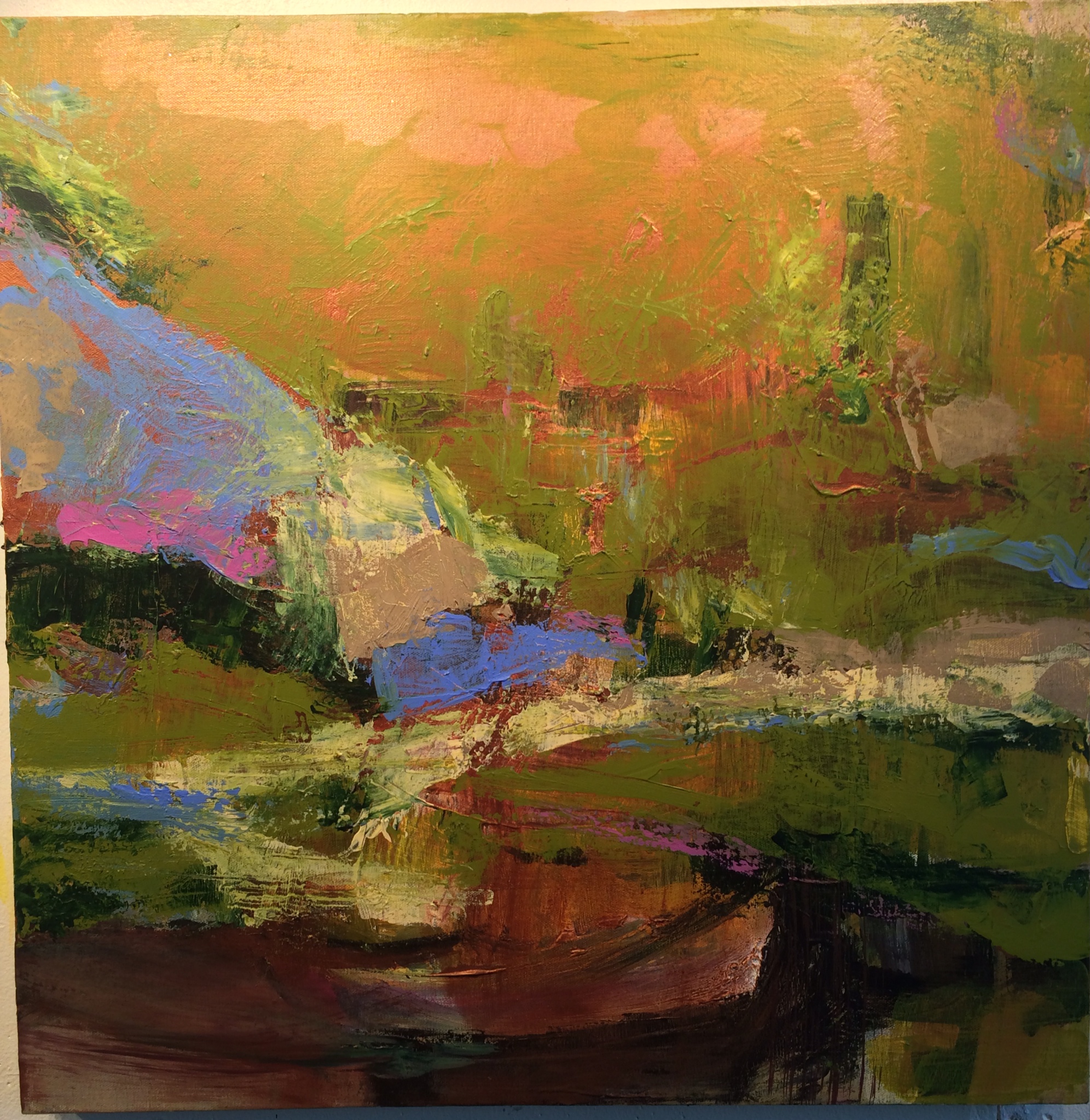 Turned paintng upside down again. (as it originally began) Unifying areas, lookng for a sense of sky. I’m always attracted to horizens.