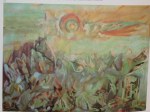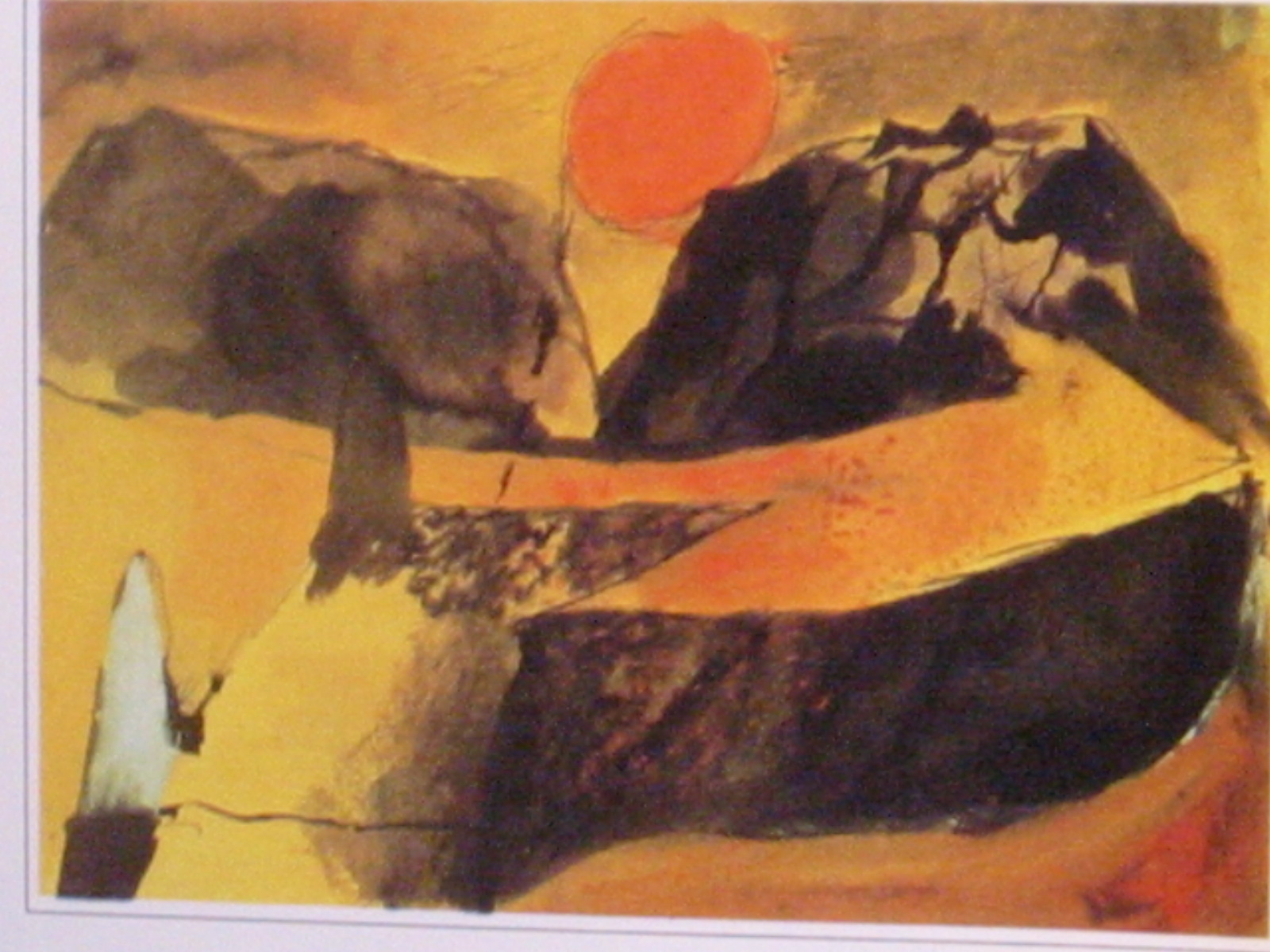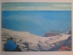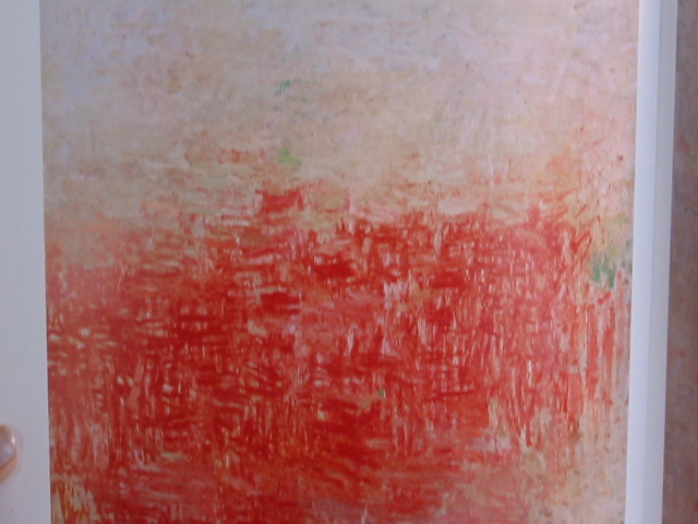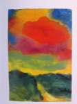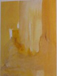 Close your eyes. Think of the last place you visited that was meaningful, peaceful, beautiful. Remember the predominant color. Glaze your whole painting that color (make sure it is thick enough that you can carve iinto it, but thin enough to be able to seesubtle, ghostly shapes underneath. With the back of the brush, draw into the wet glaze memories from that place—shapes lines, scenes. Don’t worry about accuracy. Just make marks that sing. Dry thoroughly. With alcohol and a terry rag, begin to excavate. Uncover areas that lead to a strong composition. When there is enoughof the “old” discovered, begin to paint on it anew.